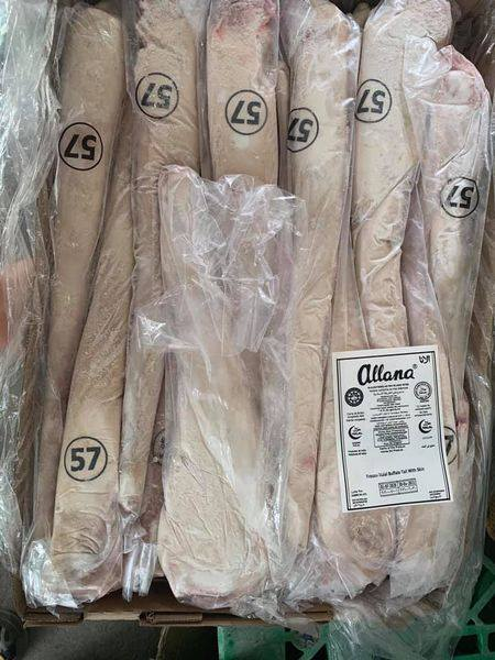 đuôi trâu (mã 57) là bộ phận sau cuối của phần xương sống, sau khi cắt tách ra khỏi phần xương sống sẽ đưa đi vệ sinh xử lý rồi hút chân không đóng gói theo dây chuyền ra thành thùng từ 18-20kg, cấp đông dưới -18 độ C bảo quản.