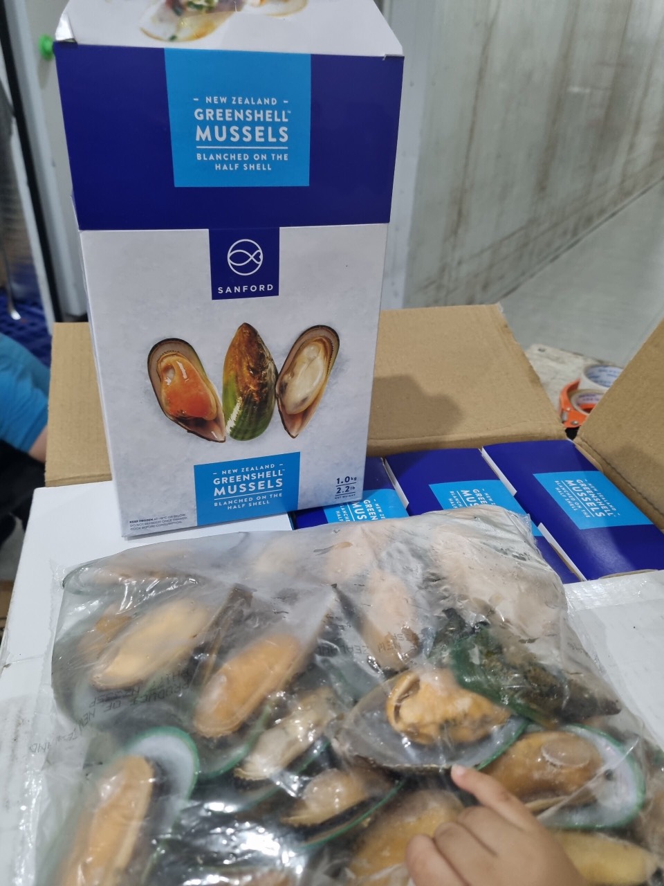 - Tách hết vỏ, Thịt vẹm được hấp hơi hoặc để tươi đóng gói